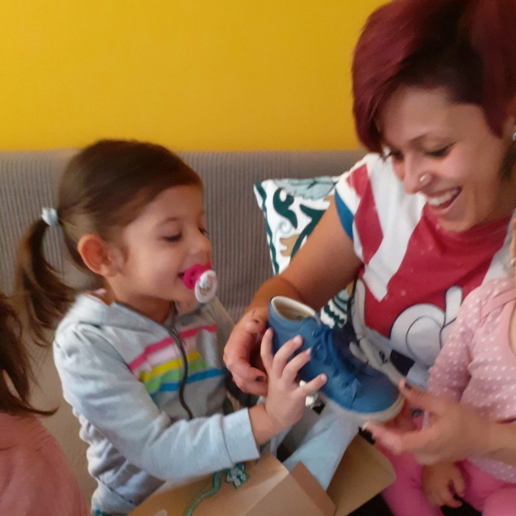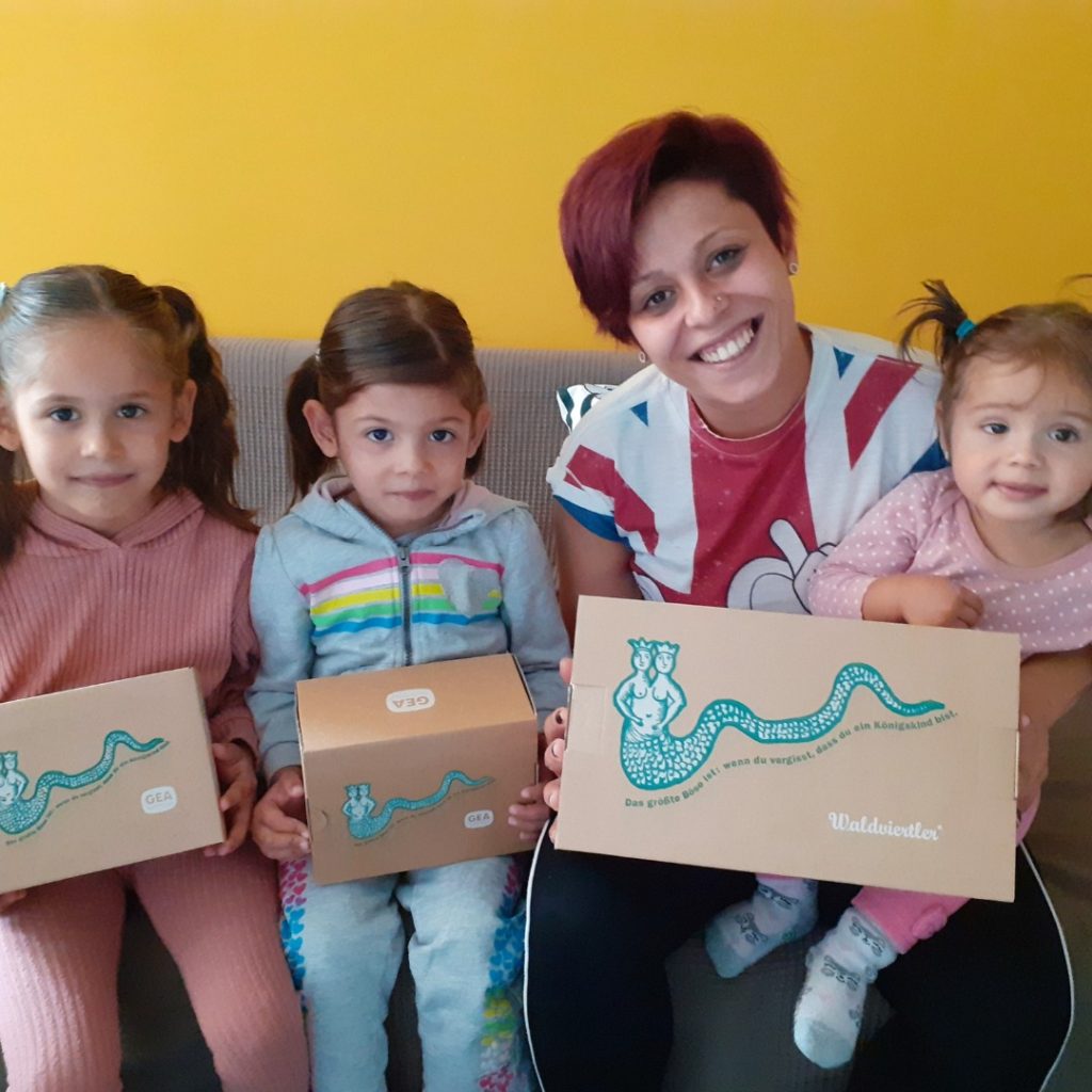 „Ich kann es gar nicht glauben, dass eine Firma wie Waldviertler einfach Schuhe verschenkt! Das ist so toll!“, staunt Frau M. (alleinerziehende Mama von 3 Kindern, die seit der Trennung von ihrem Mann in unserer Mutter-Kind-Einrichtung lebt)