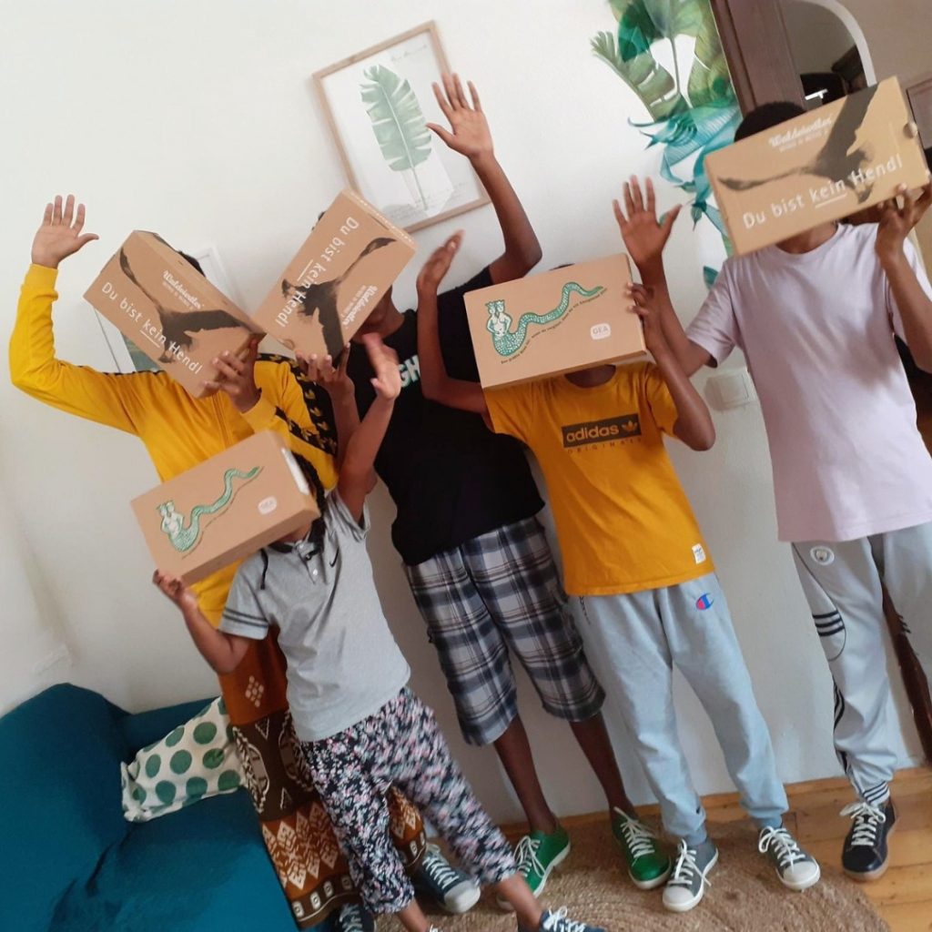 Und genau da begannen die GLÜXTAGE für die Kinder in unserer Mutter-Kind-Einrichtung und unserer Familien-Einrichtung! Insgesamt 16 Paar Schuhe konnten wir an die Familien verteilen.