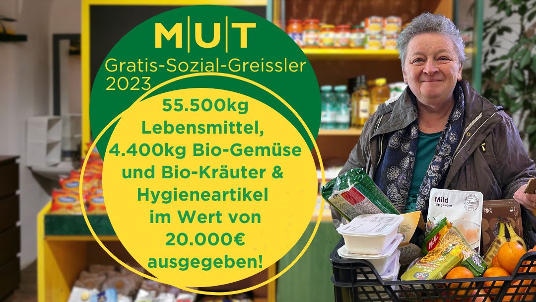 Insgesamt konnten wir in unserem Gratis-Sozial-Greissler im letzten Jahr 55.500kg Lebensmittel im Wert von 263.000€ und Hygiene- und Babyartikel mit einem Warenwert von 20.000€ an Menschen in akuten Notsituationen ausgeben.
