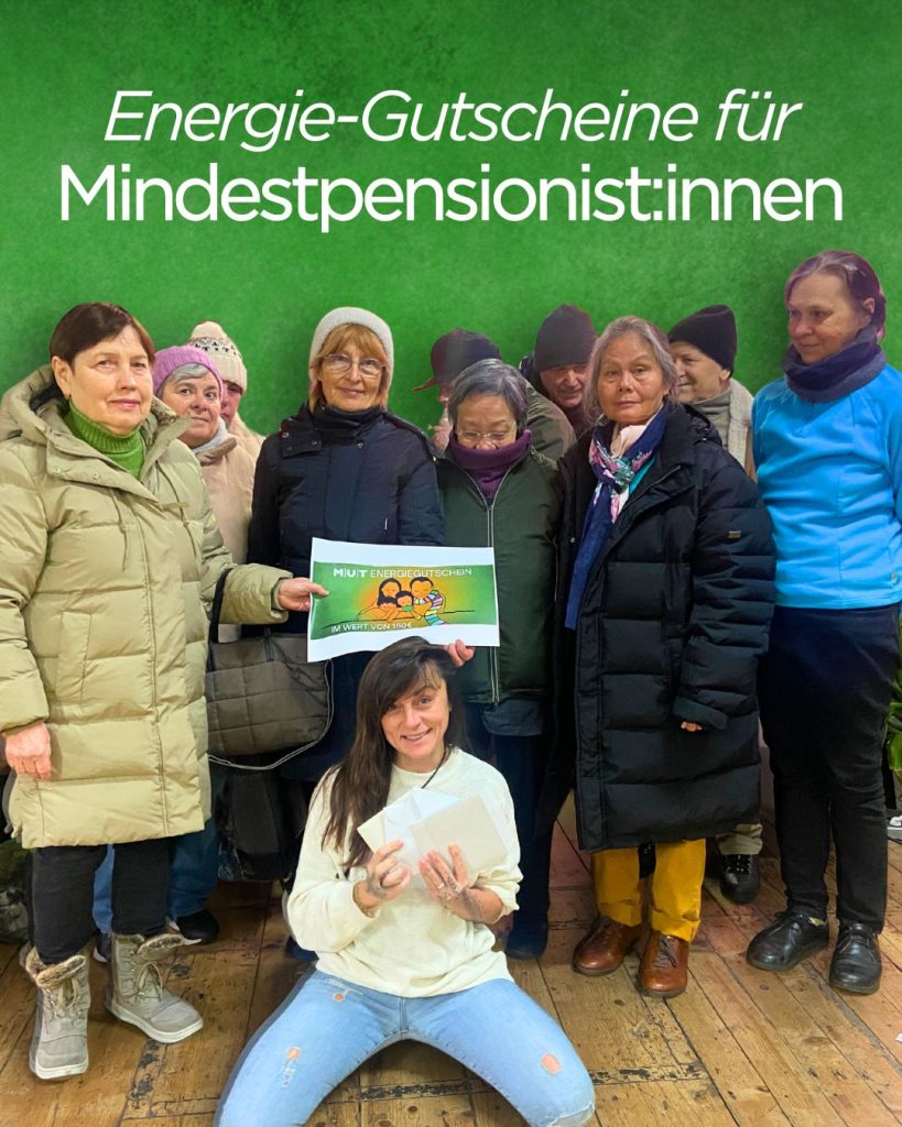 Noch vor Weihnachten konnten sich elf Mindestpensionist:innen über ein kleines “Energie-Christkinderl” freuen. Sie bekamen von uns einen Energiegutschein von jeweils 150 Euro.