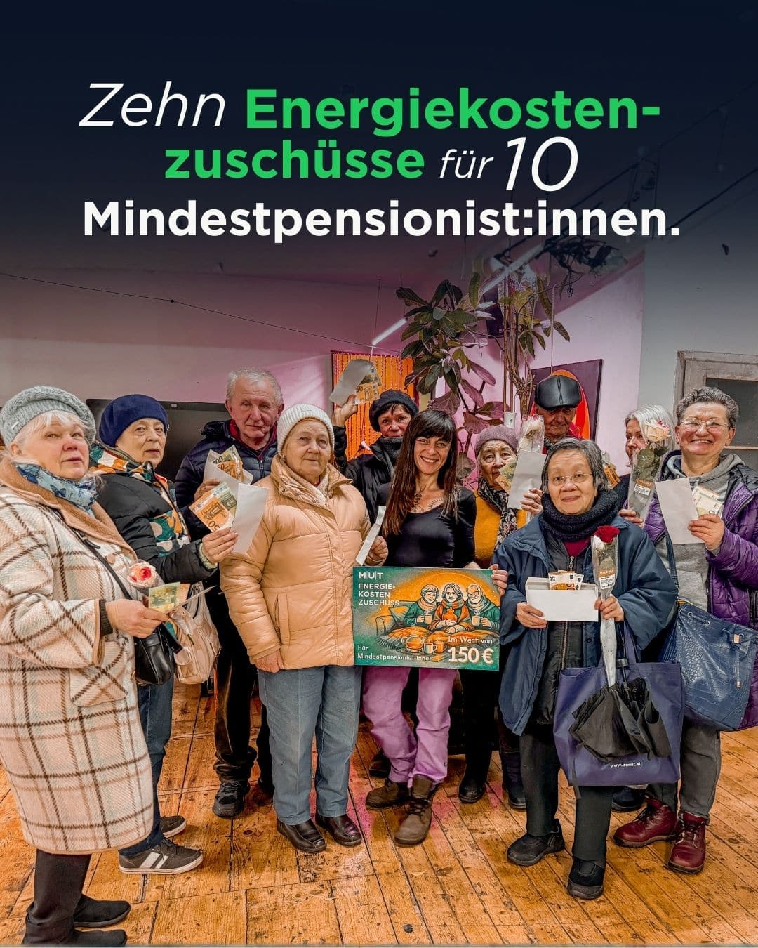 Diesmal waren es zehn Mindestpensionist*innen, die sich über jeweils 150 Euro freuen konnten. Bei einem gemeinsamen Frühstück bekamen sie von Jasna, Leiterin unserer Not- und Obdachlosenhilfe, die Energie-Unterstützung überreicht. Die Freude war allerseits groß, manche hatten Tränen in den Augen.