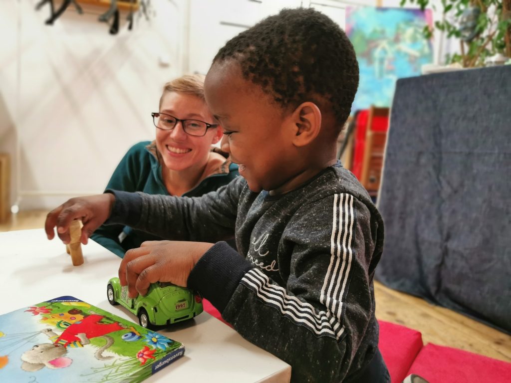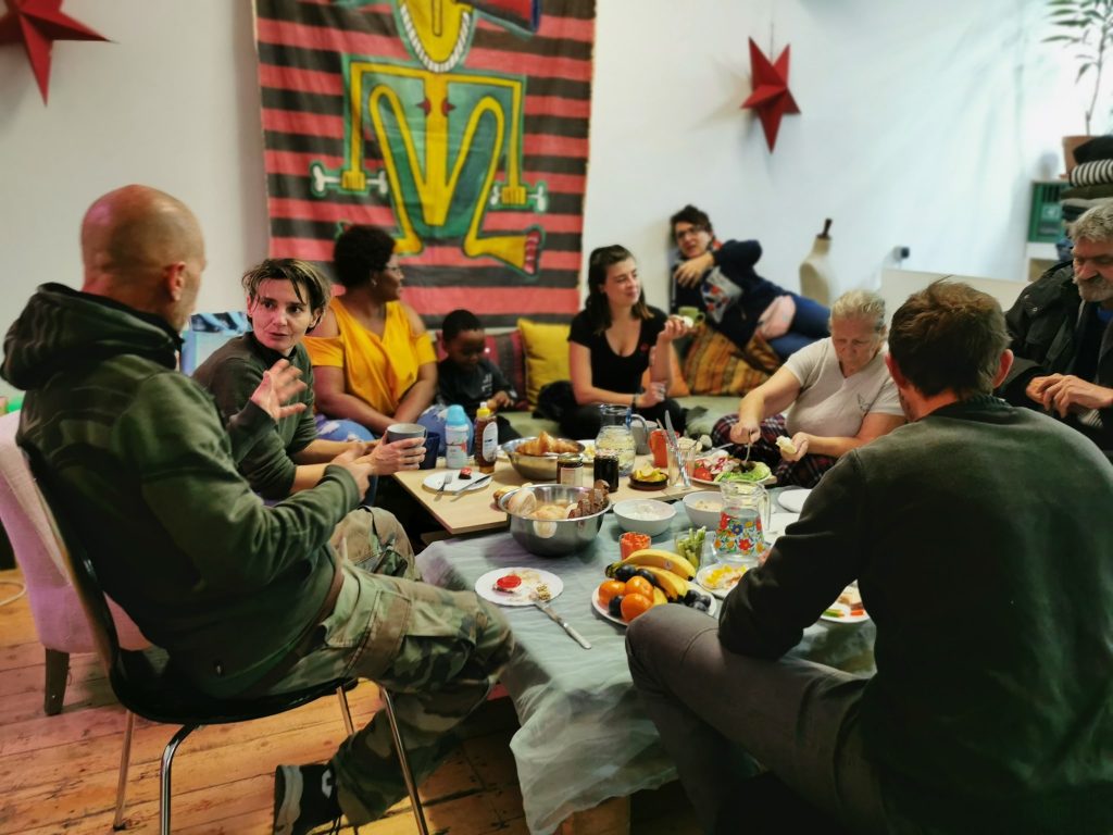 Um einander besser kennen zu lernen und Vertrauen aufbauen zu können startet jeder Massagetag mit einem gemeinsamen vegetarischen Frühstück. Schnell verflog die anfängliche Unsicherheit bei unseren vier Gästen und es entwickelte sich ein reger Austausch. Da eine Teilnehmerin keine Kinderbetreuung gefunden hat, holten wir kurzerhand ein paar Spielsachen hervor. Eine Mitarbeiterin betreute das Kind, damit die Mutter auch Zeit für eine entspannende Massage hatte.