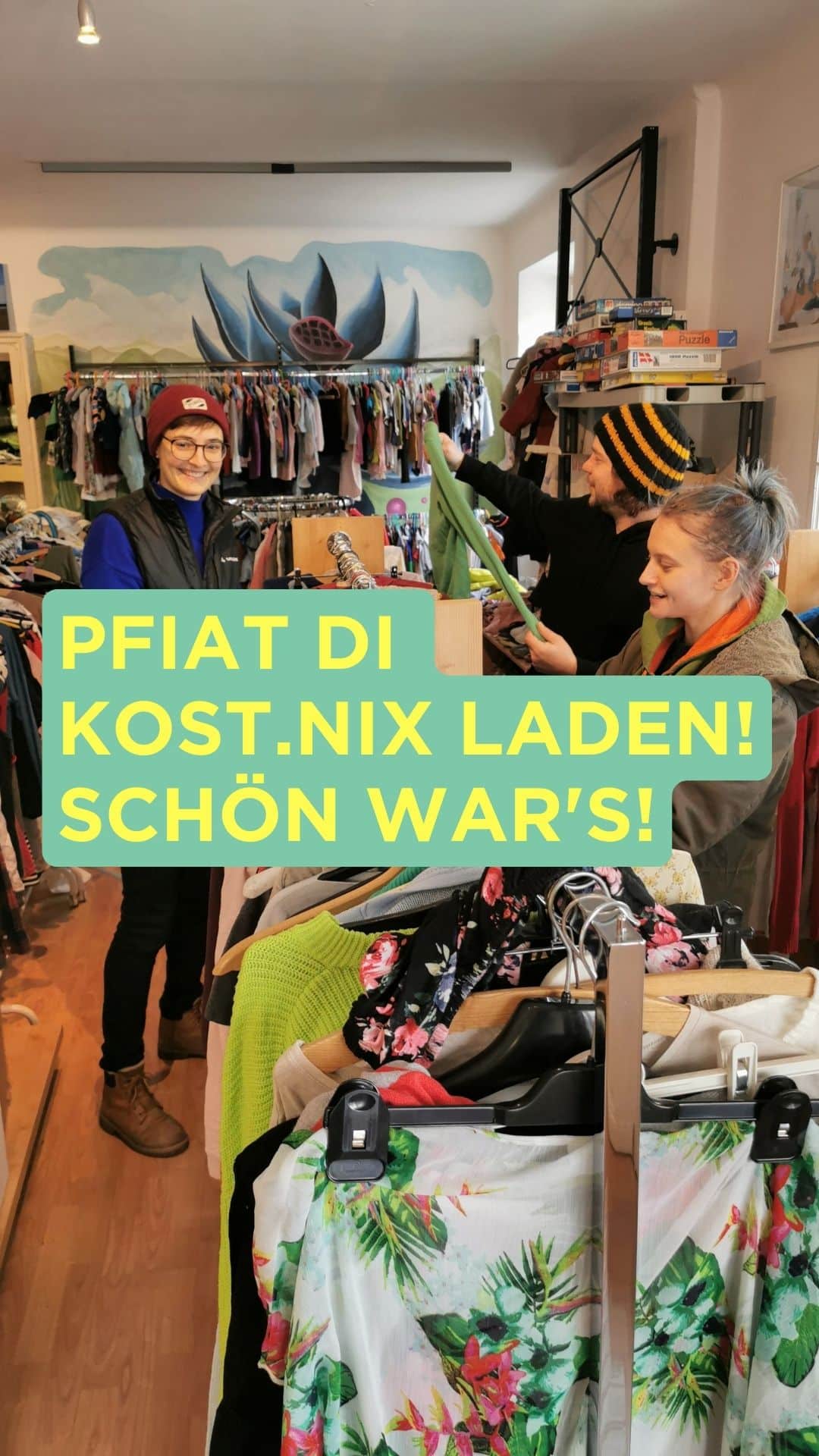 Und vielleicht gibt es für das Konzept des Kost-Nix Ladens ja auch bald ein Comeback. Das Büro der Sozialstadträtin hat uns kontaktiert, um gemeinsam Möglichkeiten zu finden, in Salzburg als Verein MUT weiter einen Kost-Nix Laden zu betreiben. Wir sehen den Gesprächen dazu optimistisch entgegen.