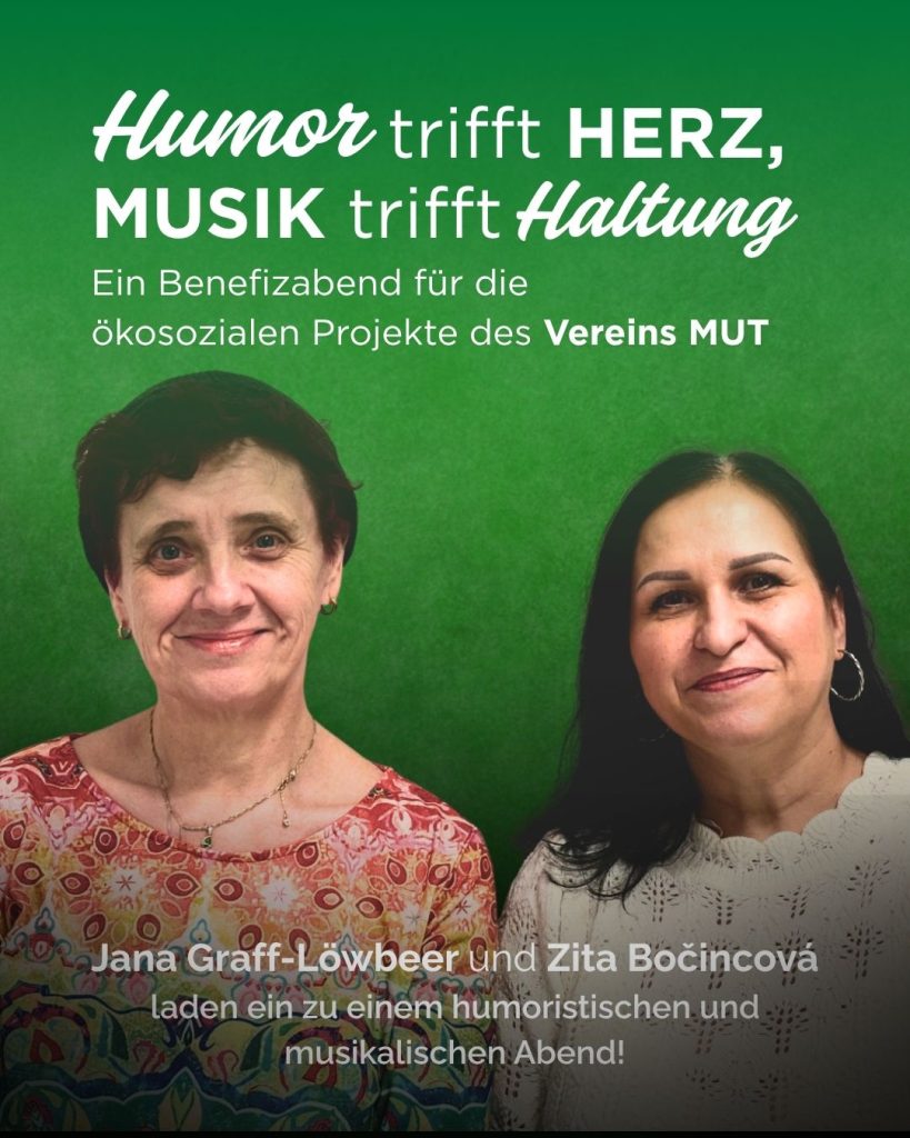 Freu dich auf ein Kabarett voller Musik, Humor, Selbstironie und Tiefgang – zugunsten der ökosozialen Projekte des Vereins MUT!
