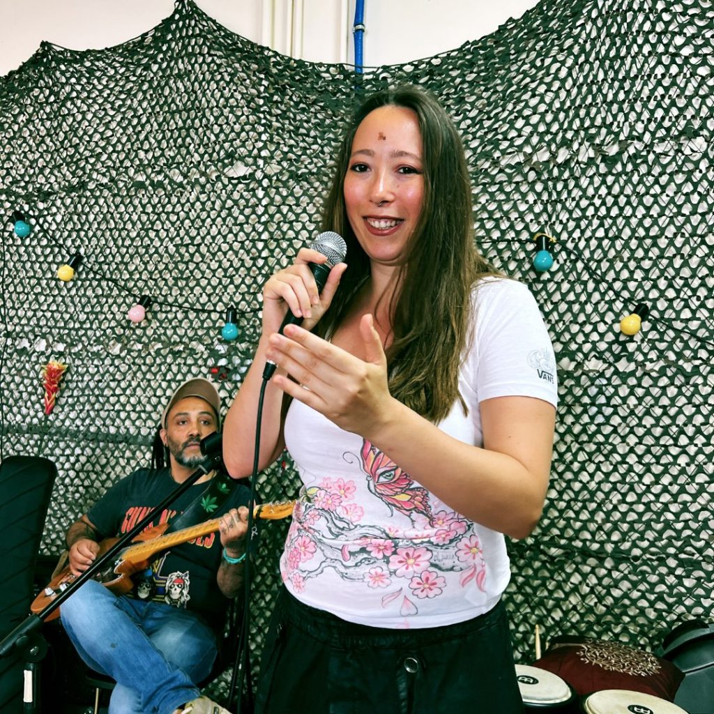 Aber nicht nur auf den Verkaufstischen war für alle was dabei – auf der Open Stage war jede*r der*die Lust hatte dazu eingeladen zu jammen oder zu singen und so ergaben sich den ganzen Tag über tolle musikalische Einlagen. Die Mamas unserer Wohnhilfe betreuten die gut besuchte bunte Kinderecke in der sich alle kreativ austoben konnten. Auch für gutes Essen und Getränke haben wir gesorgt!