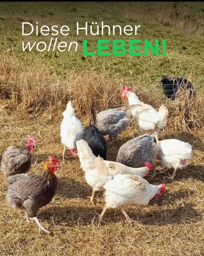 Die Tiere sind etwa 20 Monate alt und legen noch. Da ihre Legeleistung jedoch nicht mehr den wirtschaftlichen Anforderungen entspricht, sollen sie geschlachtet werden.