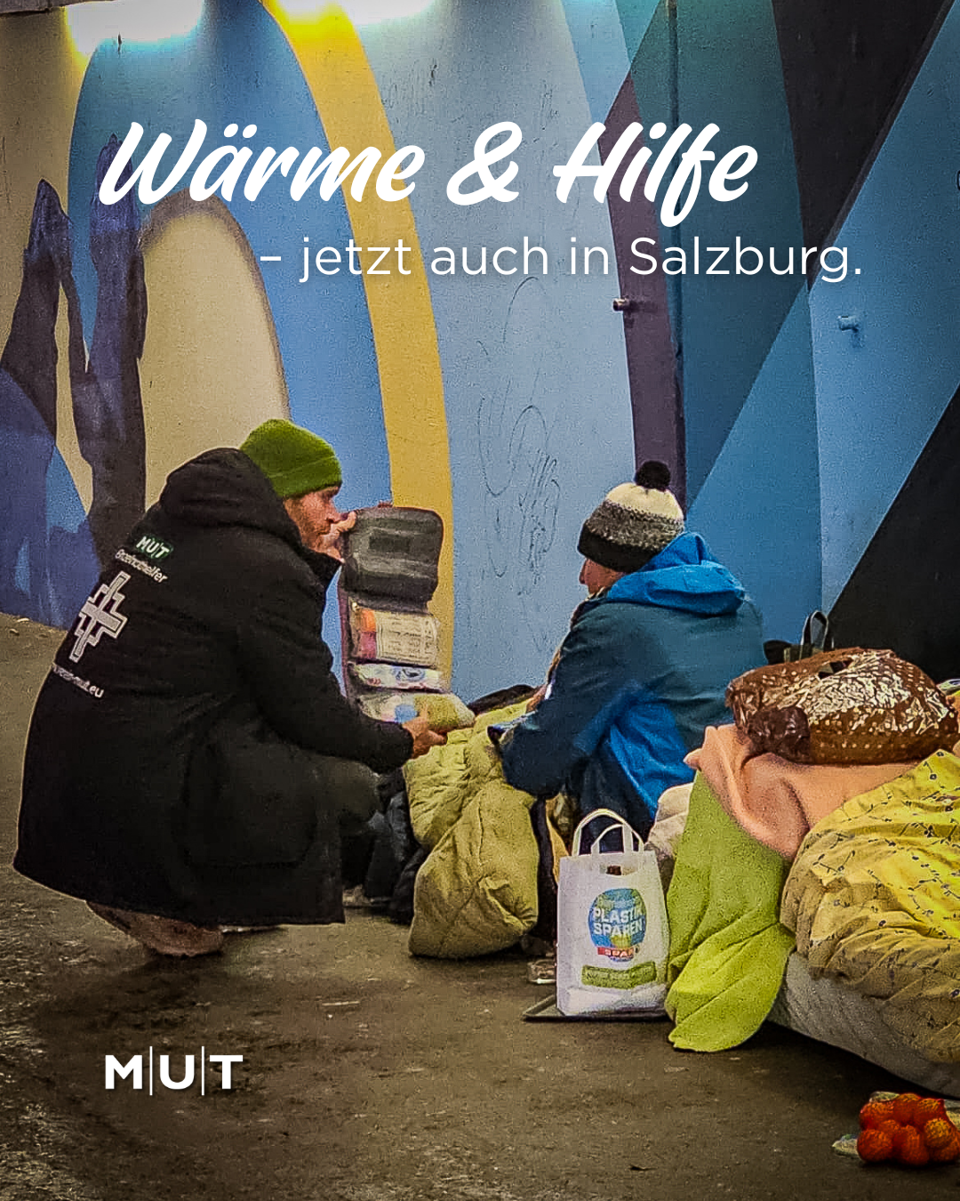 Seit mehr als zehn Jahren bringen wir in Wien in den kalten Wintermonaten wöchentlich Wärmendes wie Schlafsäcke, Isomatten, Winterkleidung und auch Hygieneartikel im Zuge unserer YesWeCare!-Ausfahrten zu obdachlosen Menschen. Und seit dieser Woche können auch obdachlose Menschen in Salzburg auf Unterstützung vom Verein MUT zählen. Unsere Salzburger Mitarbeiter:innen Markus und Melly Heis beluden ihr Auto und brachten erstmals wichtige Überlebensausrüstung zu Menschen, die den Winter auf den Salzburger Straßen zubringen müssen.