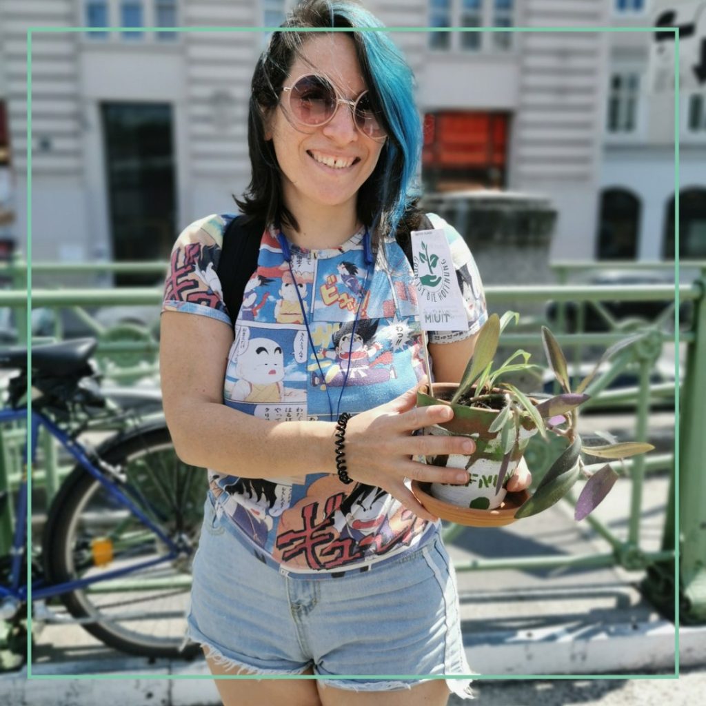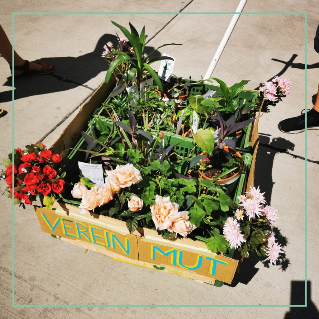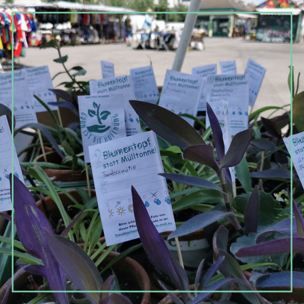 Neben Lebensmitteln werden auch viele Grünpflanzen von Supermärkten und Fachmärkten entsorgt. Der Verein MUT rettet auch diese und verschenkt sie auf der Straße per Zufallsprinzip und bedingungslos an Passant*innen.