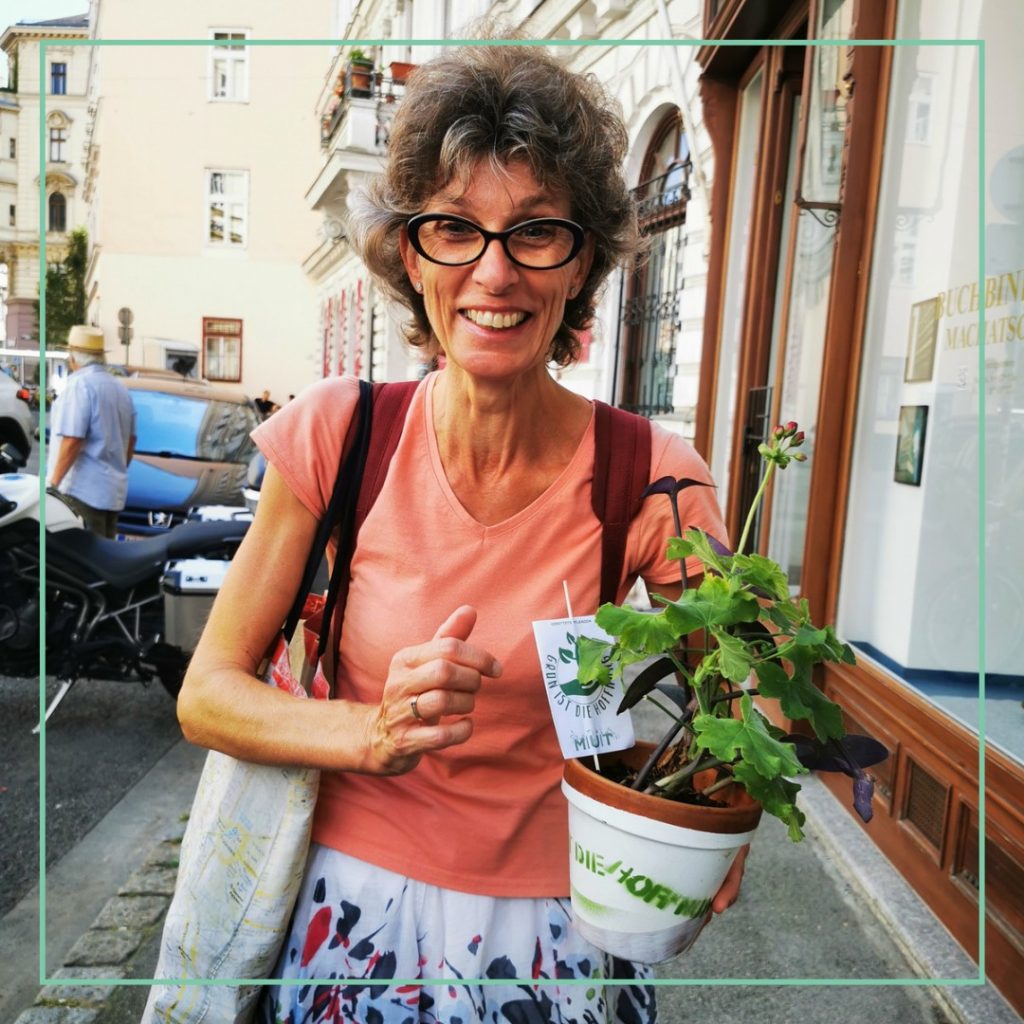 Roli Bicker von der GmbHaar in der Margaretenstraße zauberte die Aktion ebenso ein Lächeln ins Gesicht: „Mit dem Verein MUT sind wir bereits über einige schöne Projekte verbunden. Wir haben z.B. für die Obdachlosenhilfe des Vereins Kleider- und Hygienesachspenden organisiert. Über die hübschen Pflanzen freuen wir uns sehr und sie werden einen guten Platz bei uns im Geschäft bekommen. Eine super Aktion – Pflanzen retten und Freude bereiten. Top!”