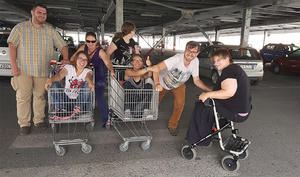In den Folgetagen klügelten Stefan und Andi eine Idee aus, um Sonja den Berg rauf und wieder runter zu helfen. Sie statteten die Schubkarre mit Decken und Seilen aus und zogen Sonja dann damit hoch.