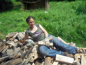 traf Andi und Dani in der Küche an. Später gesellte sich auch noch Sonja hinzu. Danach wurden Handschuhe angezogen und dann wurde Holz gemacht. Unten wurde der Bucher beladen und Matteo brachte das Holz zur Hütte hinauf. René und Dani mussten sich vor Erschöpfung zurückziehen und Stephan plagten Gliederschmerzen. Überraschend zog ein Gewitter auf und DANI, Mario und Lisa liefen schnell von unten rauf, da es plötzlich mega schüttete. Und so schnell, wie es gekommen war, verzog es sich dann auch wieder. Allerdings gab es dann keinen Strom und kein WLAN.