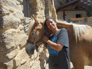 Zurück am Hof angekommen, stiegen alle ab und einige sagten, dass das ihr einziges Mal auf einem Pferderücken bleiben wird. Danach setzten wir uns alle noch auf den großen Tisch zusammen und warteten auf Dimitri und Giulia, die sich von uns verabschieden wollten. Dimitri hielt eine berührende Rede zum Abschied und es gab Umarmungen und Küsschen für alle.