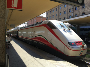Im Zug wurden die Abteile bezogen, das Gepäck so gut wie möglich verstaut, aber es war trotzdem zu wenig Platz. Wir haben gequatscht, gelesen und gegessen. Ein Abteil wollte schlafen, das andere machte Kabinenparty. Irgendwann waren alle eingeschlafen. Dann war es laut und alle waren wieder wach. Glücklicherweise konnten wir noch weiterschlafen. In der Früh kamen wir NICHT ausgeruht in Mailand an. Dort besorgte Andi die Zugtickets für die Weiterfahrt und da wir noch Zeit hatten, machten wir einen Abstecher zum Burger King. Monika freute sich über die kühle Tischplatte. Von Bahnsteig 5 fuhren wir los in Richtung Turin. In den 2. Klasse war es sehr heiß (leider war nur die 1. Klasse klimatisiert). Monika wurde auf ihrem Rollator von Dani und Iris geschoben, damit der Anschluss rechtzeitig erreicht wurde. Im Zug waren bewaffnete Polizisten, die uns zum Glück nicht mitnahmen. Sie stiegen mit 3 mutmaßlichen Flüchtlingen aus.