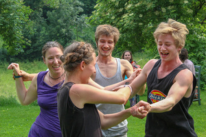 Die Arbeitstage beginnen damit, dass sich ein Team um ein ausgiebiges, abwechslungsreiches Frühstück (manchmal sogar mit Omelett oder Obstsalat) kümmert. Nachdem alles weggeräumt ist, gibt es entweder Arbeit im Garten, bei Dimitri auf der Pferdekoppel oder im Haus. Im Garten helfen wir Michi beim Anbauen von Gemüse und bei der Instandhaltung der Beete. An einem Tag haben wir sogar einen Naturzaun aus Haselnussästen gebaut. Bei Dimitri müssen Teile der Koppel von Büschen und Bäumen befreit werden, damit seine 25 Pferde mehr Platz für sich haben. Am Vormittag bleibt auch immer jemand im Haus, der das Mittagessen vorbereitet. Alle zusammen schauen wir, dass das Haus auch sauber bleibt und wir gut miteinander auskommen.
