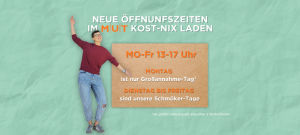 Ab 1. November haben Tauschwillige nun Dienstag bis Freitag, jeweils von 13 bis 17 Uhr, die Möglichkeit, in unserem Kost-Nix Laden in der Paris Lodron