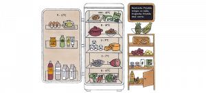 Hier seht ihr anhand von einer Illustration wie ihr die Lebensmittel im Kühlschrank richtig lagert. Hinein schauen lohnt sich 🙂