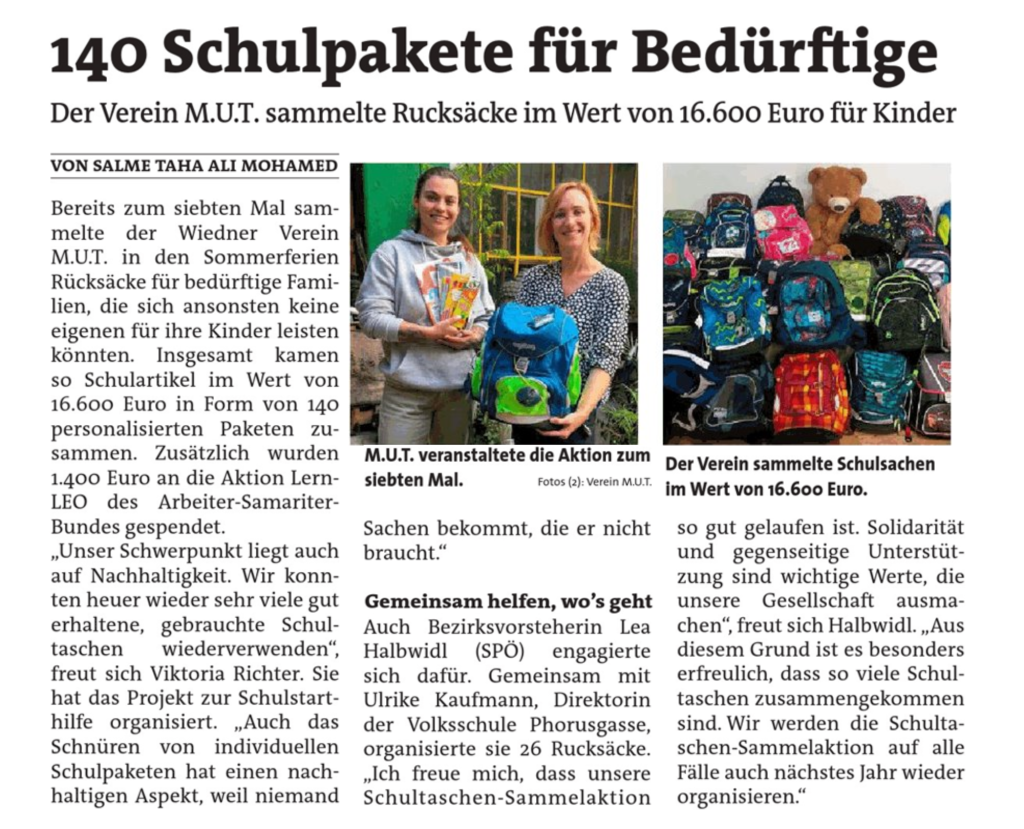 140 Schulstartparkete für Bedürftige – bezirkszeitung