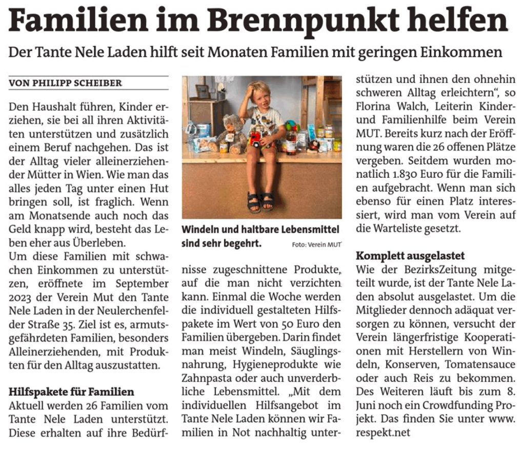 Familien im Brennpunkt helfen – Wiener bz Ottakring