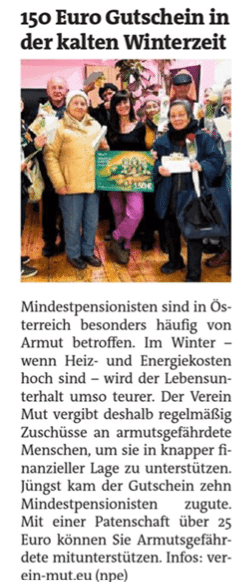 Verein Mut gab 150 Euro an Mindestpensionisten
