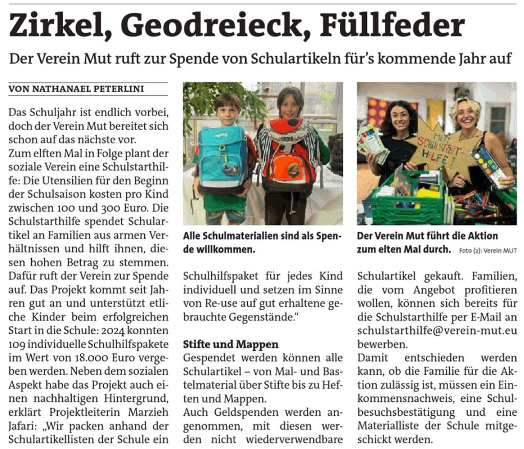 Zirkel, Geodreieck, Füllfeder – unsere Schulstarthilfe i.d. Wr. Bezirkszeitung