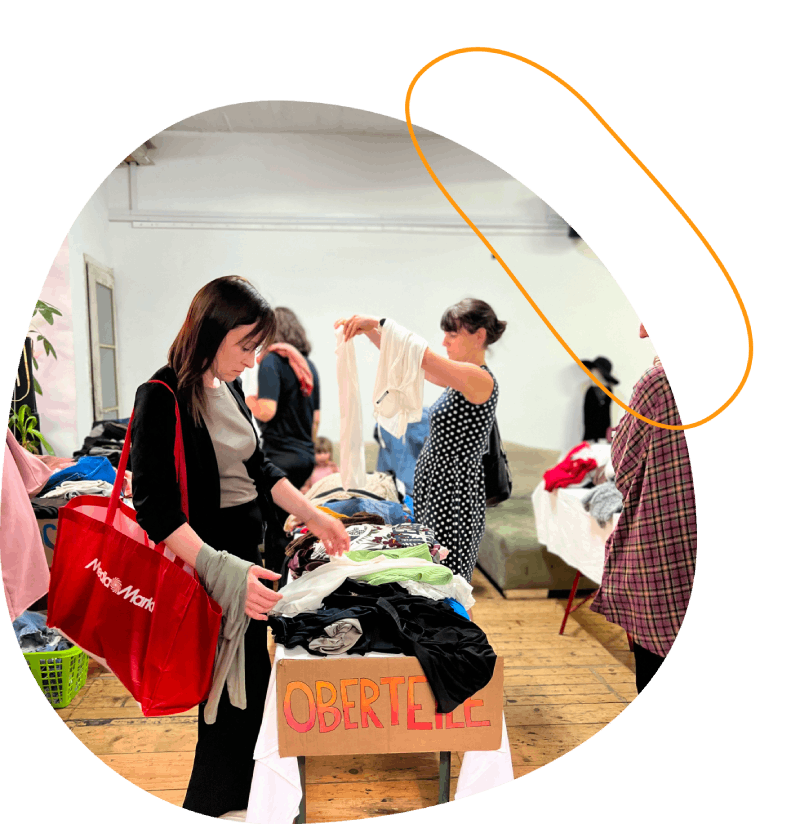 Der Verein MUT organisiert regelmäßig Kleidertauschpartys, um Textilmüll zu vermeiden und Bewusstsein zu schaffen: